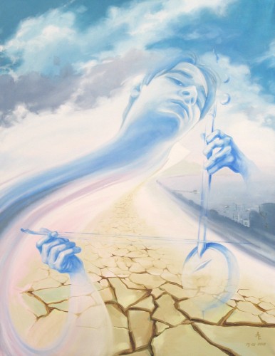 Schilderij van mijmering (olieverf) - 70x90 cm
