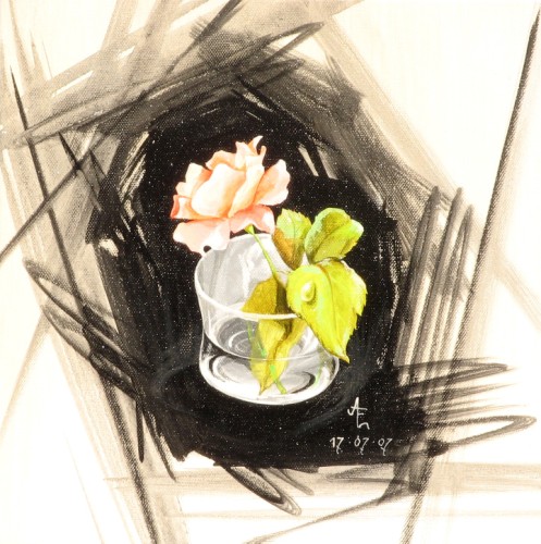 Bloem in een glas (olieverf)