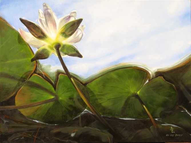 Waterlelie (zicht van onder water - olieverf) - 80x60 cm